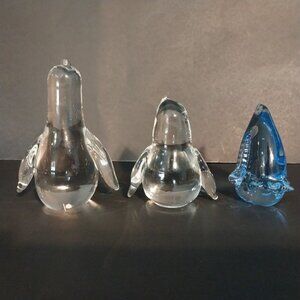 Penguin Glass Figurine Paperweight Vintage Lot of 3 Blue Clear