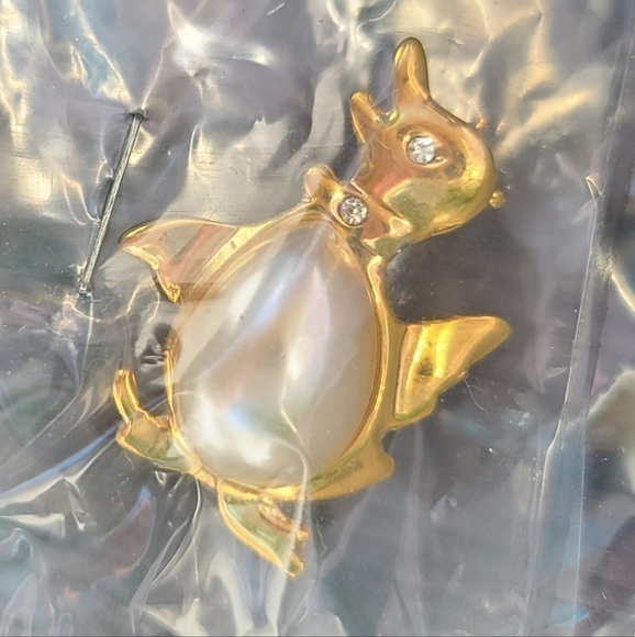 Penguin Gold Tone Faux Pearl Brooch Pin