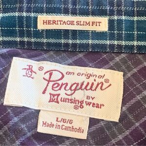 Penguin Green/Blue Plaid Button Down Shirt Size Large Heritage Slim Fit