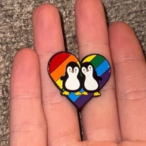 Show your love for penguins with this vibrant enamel pin featuring a heart design. Perfect for adding a splash of color to your accessories.