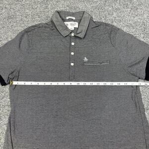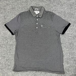 Penguin Heritage Slim Fit Gray Black Short Sleeve Collared Polo Shirt Size Large
