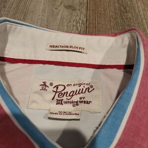 Penguin Heritage Slim Fit Short Sleeved Button Up Shirt Mens Size Medium