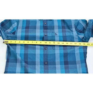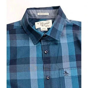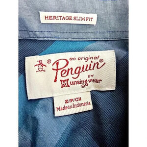 Penguin Heritage Slim Size Small Men's Blue Check Embroidered Pocket Logo Shirt