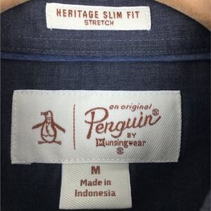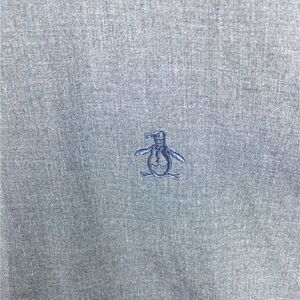 Long sleeve mens shirt with pointed collar. Button down the front. Logo on the left side of the shirt on the breast. Buttons at the bottom of the cuff