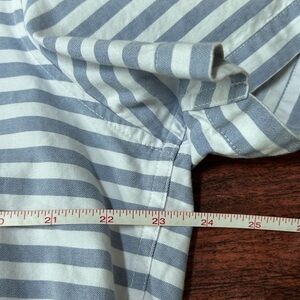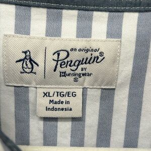 Penguin Mens Shirt Extra Large White Blue Stripe Button Down Short Sleeve Logo