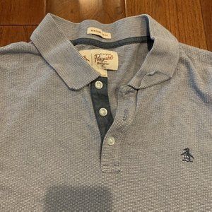 Penguin Men's Shirt Short Sleeve Gray Heritage Slim Fit Size M