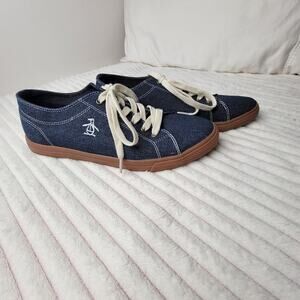 Penguin Menās Size 9 Denim Lace-Up Sneakers | Casual Retro Street Style