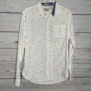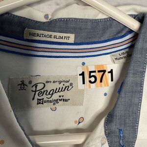 Penguin Munsingwear Tennis Racquet Print Mens Button Up White Shirt Size L.