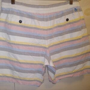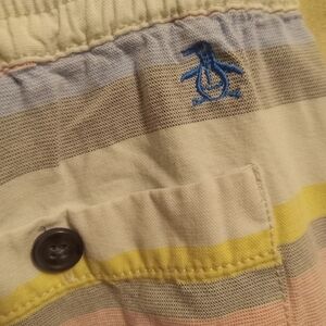 Penguin Pastel Stripe Drawstring Volleyball Style Chino Shorts Men's Large.