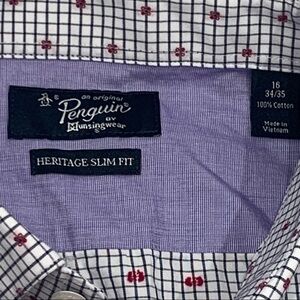 Penguin Shirt Adult 16 34/35 White Check Heritage Slim Fit Button Down Men