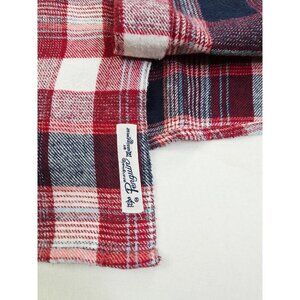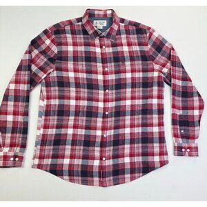 Penguin Size XL Mens Red White Black Flannel Plaid Pocket Embroidered Logo Shirt