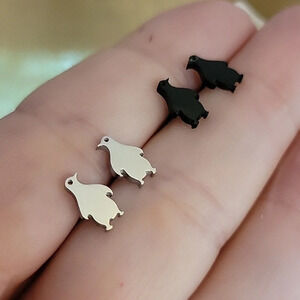 Polished stainless steel with hypoallergenic posts. Great for all ages.