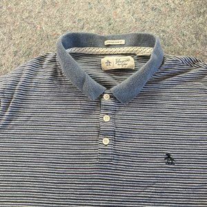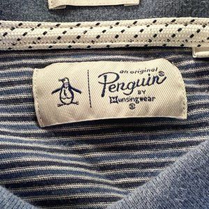 Penguin an Original Polo Shirt Mens Adult Large Blue White Stripes Short Sleeve