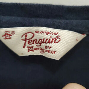 Penguin by Munsingwear Men's Navy Scribble Brand Logo Short Sleeve V-Neck Tee L