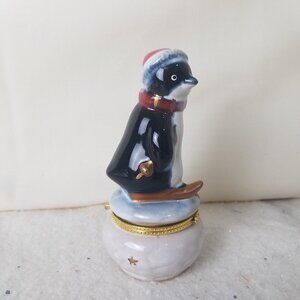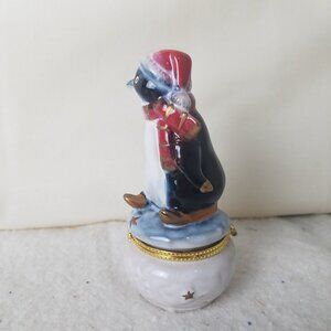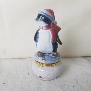 Penguin trinket box porcelain vintage Christmas figure décor scarf