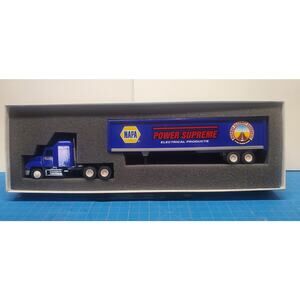 New in box Penjoy 1/64 Mack CH 600 semi tractor with box trailer. NAPA power supreme Electrical Products graphics. Box shows minor shelf wear.