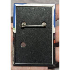 Martin Luther King Jr. Pin from Penn State Harrisburg. It has a black and white picture of Martin Luther King Jr, with rainbow hands reaching towards the middle to hold each other. The front reads "Let us live together in peace and love in a beloved community".