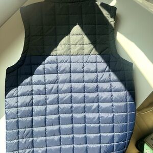 Quilted design for warmth. Stylish navy and black color scheme. Perfect for layering in cooler weather.