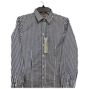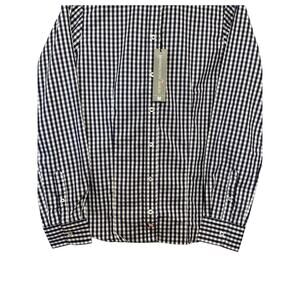 Pennington & Bailes Gingham Button Up Shirt Long Sleeve Collar Blue White S NWT