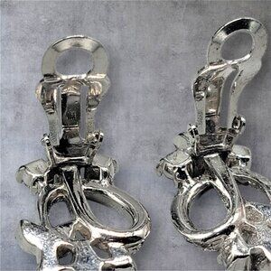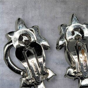 Vintage Pennino clip-on earrings feature sparkling clear rhinestones on rhodium plating, offering an elegant touch to any outfit. Perfect for vintage jewelry collectors or those seeking classic glamor.