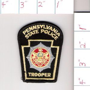 Pennsylvania State Police Trooper sew or iron-on patch that measures appx. 2 1/2" wide x 3 3/8" high. It has previously been sewn on. Overall, very good used condition. Collection purposes only.