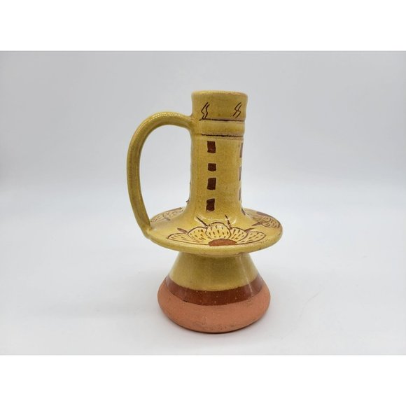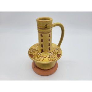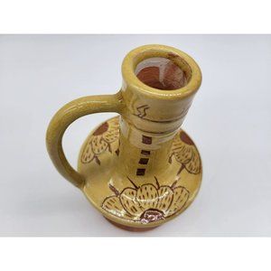 Pennsylvania Yellow Ware Glazed Chimney Candlestick W/Handle Incised Design