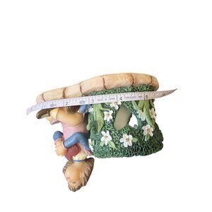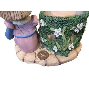 This vintage 1996 figurine captures timeless charm, featuring a girl holding a heart beside a floral votive candle holder. A delightful Happy piece.
