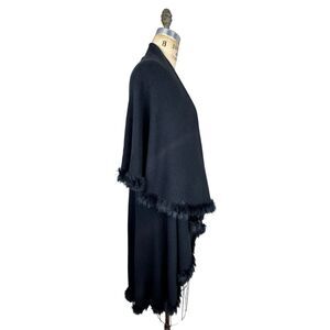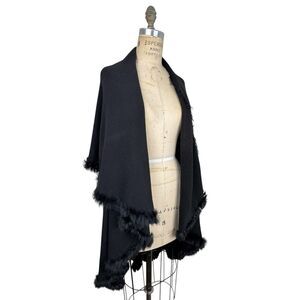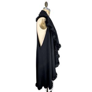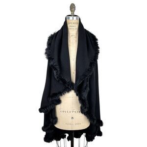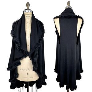 Penny Lane Sleeveless Cardigan Sweater Black OSFM Rabbit Fur Trim Boho Floral