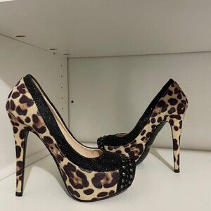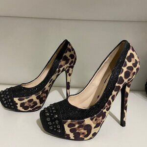 Penny Loves Kenny Leopard Print Closed Toe Stiletto High Heels with Studs, wore them once, stunning and in perfect conditions.