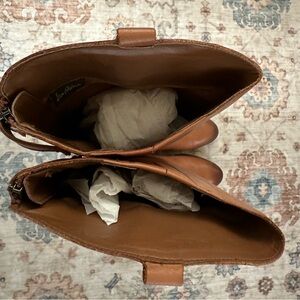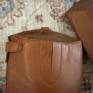 Our classic leather riding boot, Penny, adds luxe equestrian chic to any outfit with its sleek, timeless silhouette. This universally-flattering style features a pull-on tab and back zipper closure for comfort and ease. Pair them with skinny jeans and a blazer now or bare legs and a tailored dress later for unstudied preppy elegance.