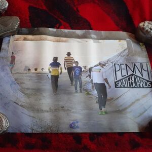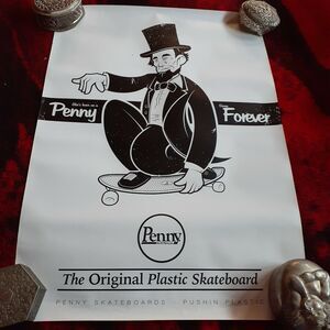 This auction is for five different 16" by 23" paper posters for Penny Skateboards, they have been hung up at one time, they have small tack holes in the edges. Great posters, great colors, good used condition.