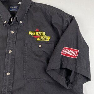 Pennzoil Racing Button Up Shirt Men’s L Short Sleeve Logo Performax 100 Black