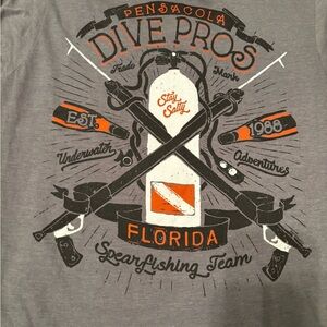 Grey T-shirt with cute design. Pensacola Florida dive pros Tee