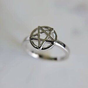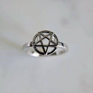 Pentagram Sterling Silver Ring, 925 Stamped, non tarnish, Rhodium plated