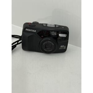 The Pentax IQZoom EZY-R Date Compact 38-70mm Zoom Camera in black is a point-and-shoot film camera from the 1980s. Manufactured by PENTAX, this compact camera features auto exposure, a built-in flash, and an electric drive. It is designed for ease of use, making it a convenient choice for film photography enthusiasts looking for a simple yet reliable camera. With its 35mm format and auto focus capabilities, the Pentax IQZoom EZY-R Date Compact is a versatile option for capturing timeless moments with precision and clarity.