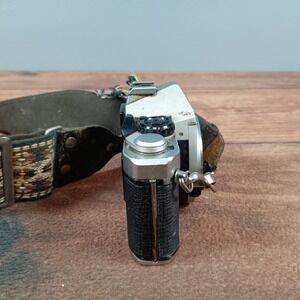 Vintage Pentax ME Super, a classic 35mm film SLR camera perfect for photography enthusiasts and collectors alike. This camera is known for its compact size and user-friendly design, making it an excellent choice for both beginners and experienced photographers. The Pentax ME Super features a bright viewfinder and intuitive controls, allowing for precise adjustments to capture stunning images. It also includes a retro camera strap with an interesting pattern. While showing signs of use, this Pentax ME Super retains its charm and offers a unique opportunity to experience the art of film photography with a reliable and iconic camera.\