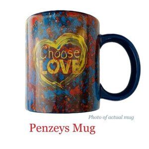 This ceramic mug from Penzeys, featuring a vibrant, heartwarming "Choose Love" design, is both functional and stylish. It holds up to 16 oz, making it suitable for various beverages. Crafted for durability and ease of use, it’s practical for everyday use or as a thoughtful gift.