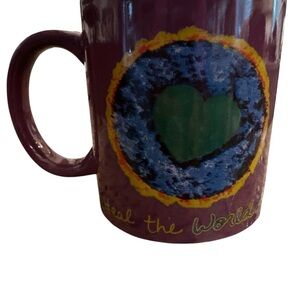 Penzeys Purple ‘Heal The World Cook Dinner Tonight’ Coffee Mug VTG