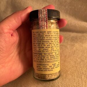 Traditional oil and vinegar salad dressing base…mix with ingredients listed on back of jar to make a delicious Italian dressing. Jar is approximately 4 in. tall. New!