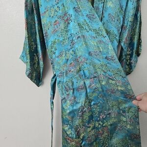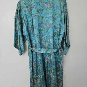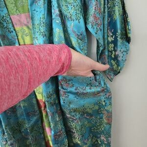 Peony Brand Kimono Robe Womens S Blue Satin Shanghai Vintage Chinese Jacket