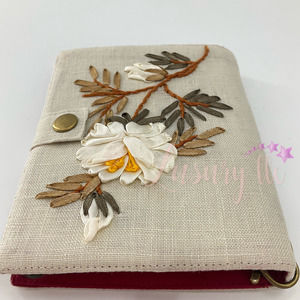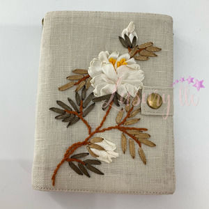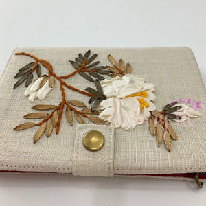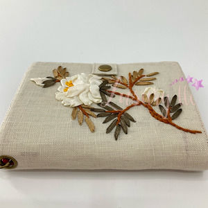 Peony Embroidery Passport Wallet, Birthday Gift, Versatile Washable, White/Tan