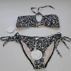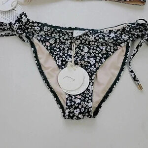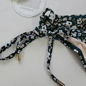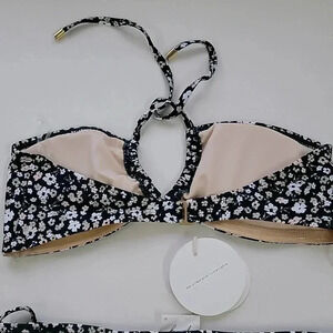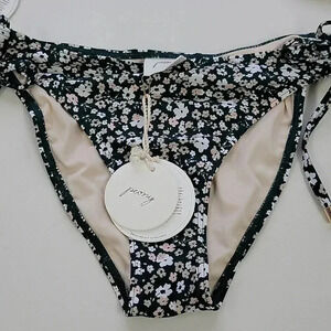 Petite fleurs grace this bikini top and bottom from Peony with contemporary charm. Featuring recycled materials, this flirty swimsuit looks equally pretty near the pool or beach.