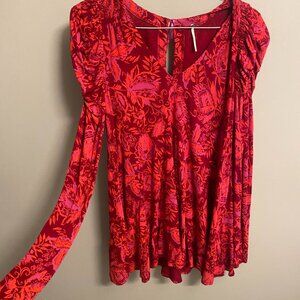 People Scarlet Red Hello Lover Ruched Sleeve Tunic