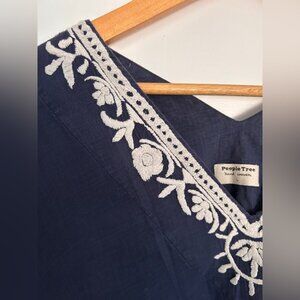 People Tree Hand Woven Navy & White Cotton Beach Cover Up O/S