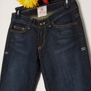 Anthropologie People Liberation Star Imprint on Back Pockets finished in Gold Sequins! Dark Blue Flare Jeans!