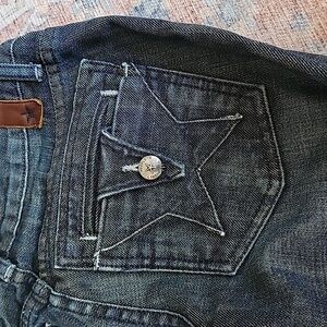 Jeans are in excellent condition. Purchased around 2005 to 2006. Good pair of throw back jeans. These jeans are a harder find. Has a layered back pocket. Makes the backside look good!