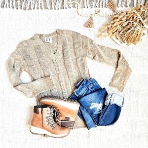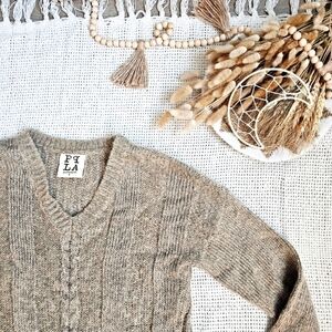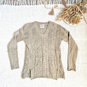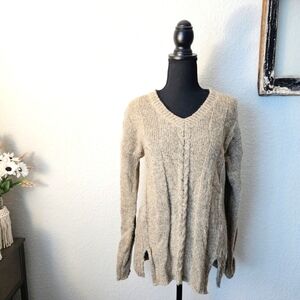 incredible knit detailing | side slits | v-neck | very warm | gorgeous neutral color | super cozy | excellent condition - no visible flaws