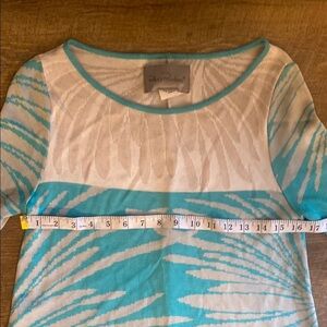 This long sleeve tee showcases a captivating tie-dye pattern in blue and white, offering a stylish and comfortable fit. The soft, stretchy knit fabric ensures ease of movement, making it perfect for everyday wear. Excellent preowned condition. No rips, stains, or odors. See all photos.