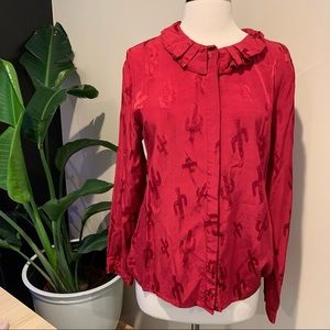 Pepaloves—Red Shirt Peter Pan Collar Cactus Print in the Blink. Sz L