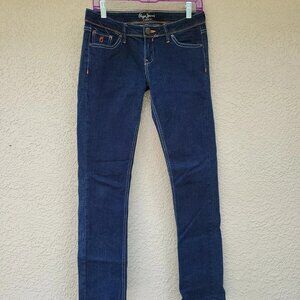 Pepe Jeans London Men's Blue Straight Leg Embroidered Dark Wash Jeans Size 29x33